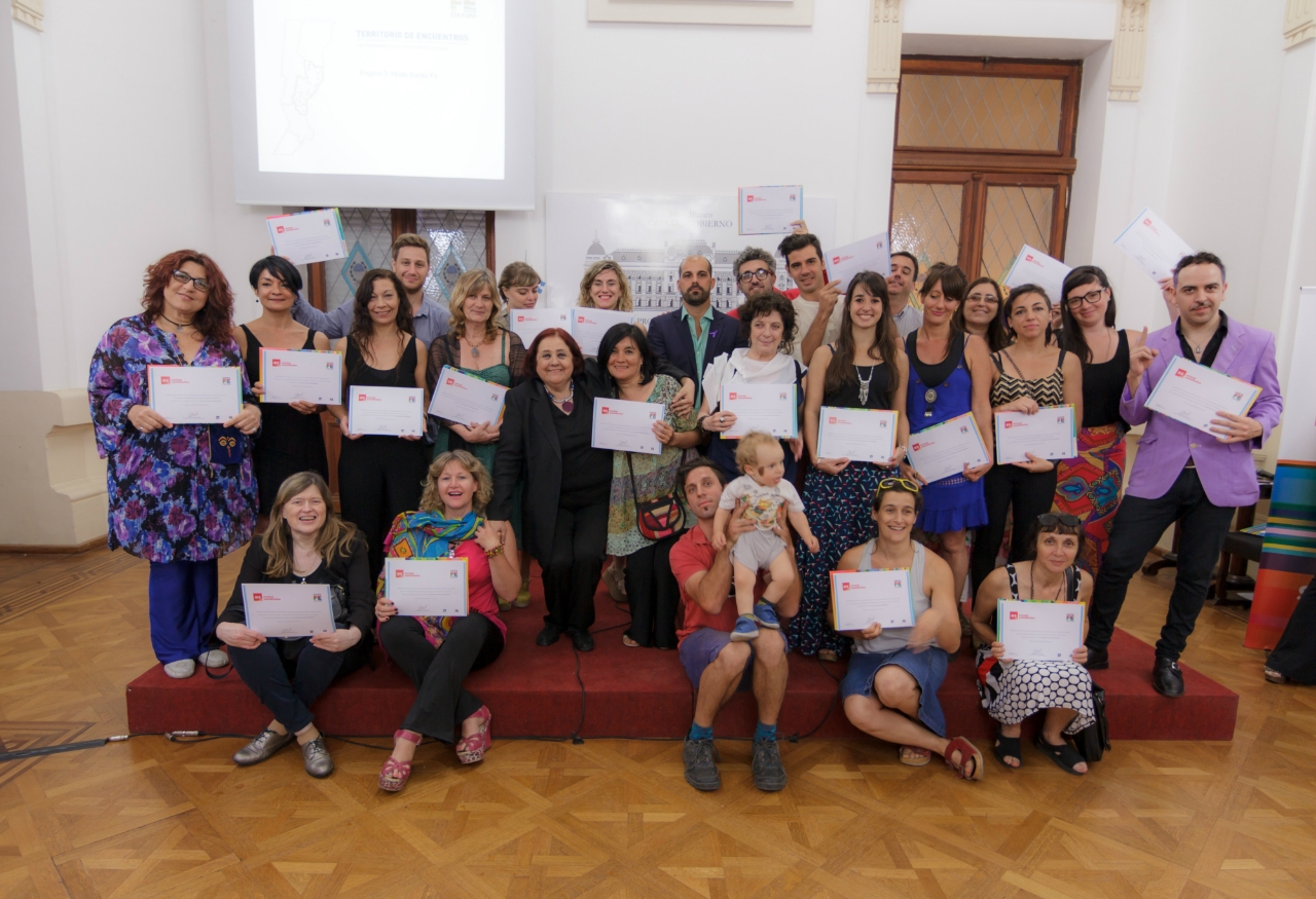 Días atrás, en el Salón Blanco de Casa de Gobierno, y presidido por la ministra Chiqui González se desarrolló el acto por el cual los proyectos seleccionados de los programas culturales “Territorios de Encuentros” y Escena Santafesina” recibieron sus diplomas.