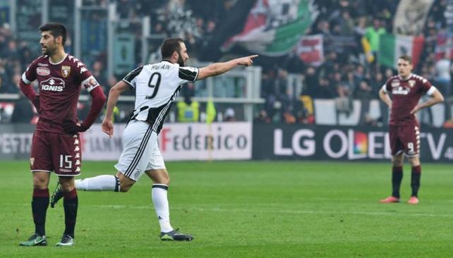 Gonzalo Higuaín brilló en el clásico de Turin al anotar un doblete para su equipo, la Juventus, venció por 3-1 al Torino, resultado que le permitió mantenerse en lo más alto de la Serie A, con 39 puntos.