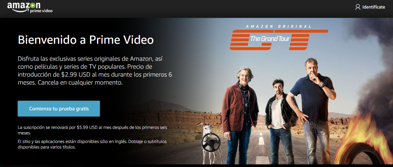 The Grand Tour, Mozart in the Jungle, The Man in the High Castle y Transparent son algunos de los títulos que se ofrece en el sitio del gigante del comercio online.
