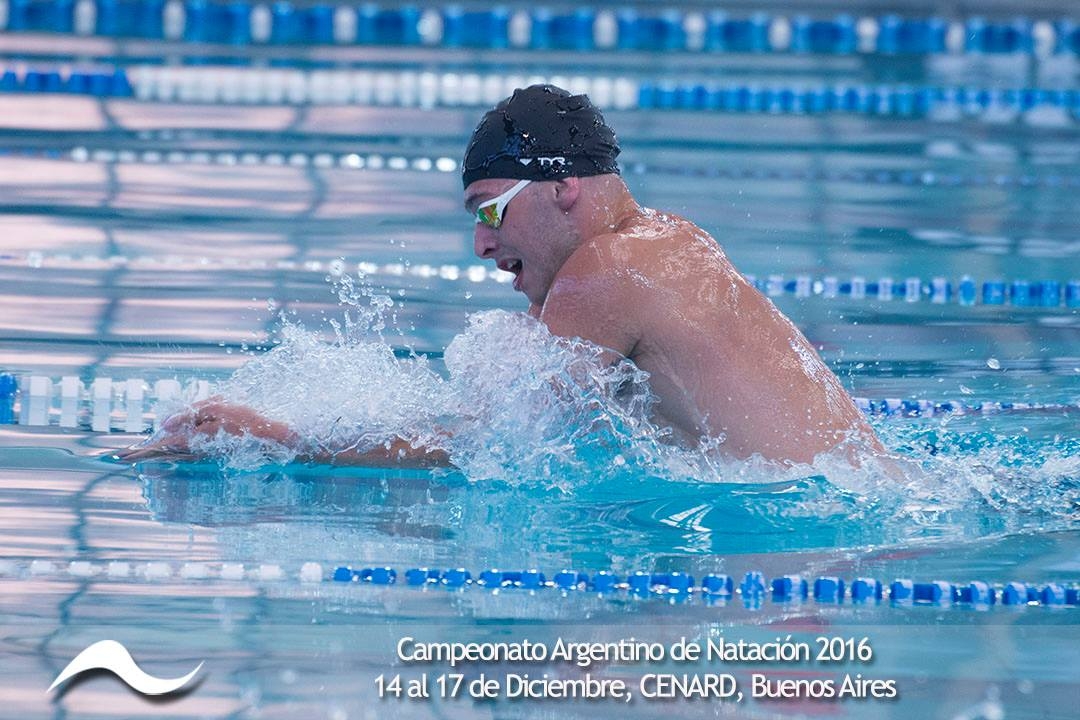 El nadador de San Justo se quedó con su tercera medalla en el Campeonato Argentino Open de 2016, clasificatorio para el Mundial 2017 de Budapest, Hungría. Se impuso en los 200 metros pecho con un tiempo de 2'17''03/100.