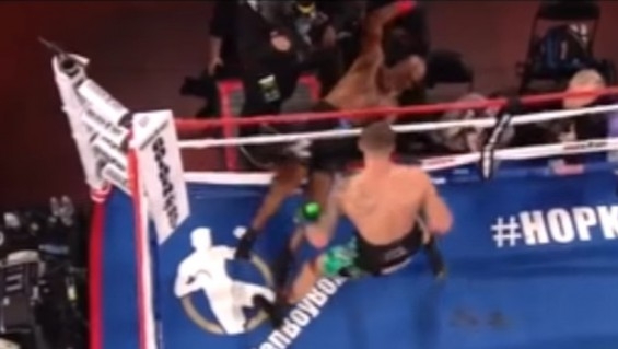 Hopkins fue derrotado por KO técnico en el octavo asalto, después de que el boxeador de 24 años lo sacara del ring. El árbitro interrumpió la pelea después de que el veterano peleador fuera incapaz de volver a tiempo al cuadrilátero.