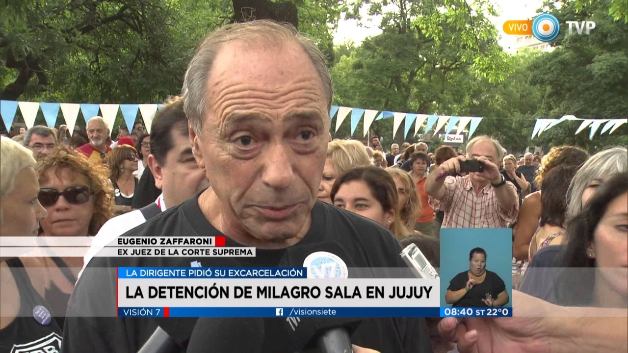 A la salida del penal, el miembro de la Corte Interamericana de Derechos Humanos habló con la prensa y afirmó que la detención de la dirigente “es un disparate”. “Es la quiebra del Estado de Derecho y me parece que tendrían que empezar a pensar en cómo se resuelve y en cómo salir con el menor costo posible para ellos”, manifestó Zaffaroni. Como solución propuso que intervenga el máximo tribunal y reconozca los fueros que Sala tiene como parlamentaria del Mercosur.