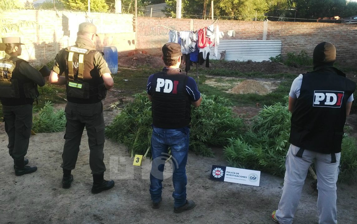 En un procedimiento realizado a primeras horas de esta mañana, la policía de investigación allanó una finca ubicada en Tomás Lubary, en la ciudad de Santo Tomé. En esta vivienda, los agentes encontraron plantas de marihuana (que ronda los 2,5 metros de altura) y armas.