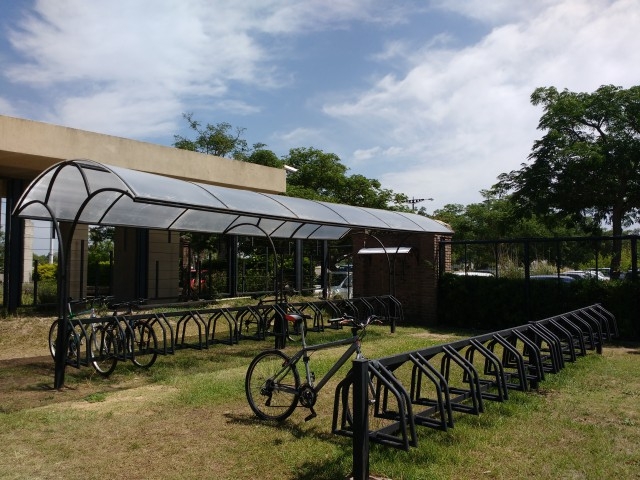 Siguiendo esta línea, y en consonancia con la política de UNL Verde, en el Predio UNL-ATE se inauguró una bici-estación. Se trata de un estacionamiento techado para bicicletas que ya se encuentra a disposición de todos los socios y usuarios del Predio. Es una estructura sencilla y techada, de fácil acceso, segura, con infladores y herramientas necesarias para la reparación de los rodados.