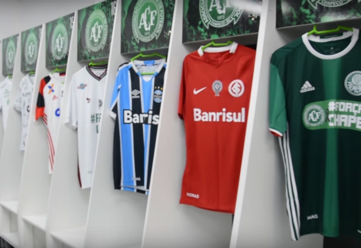 El sitio oficial del Chapecoense publicó un video en el que se pueden ver las camisetas de todos los equipos del Brasileirao en el vestuario del Arena Condá con los mensajes de apoyo.