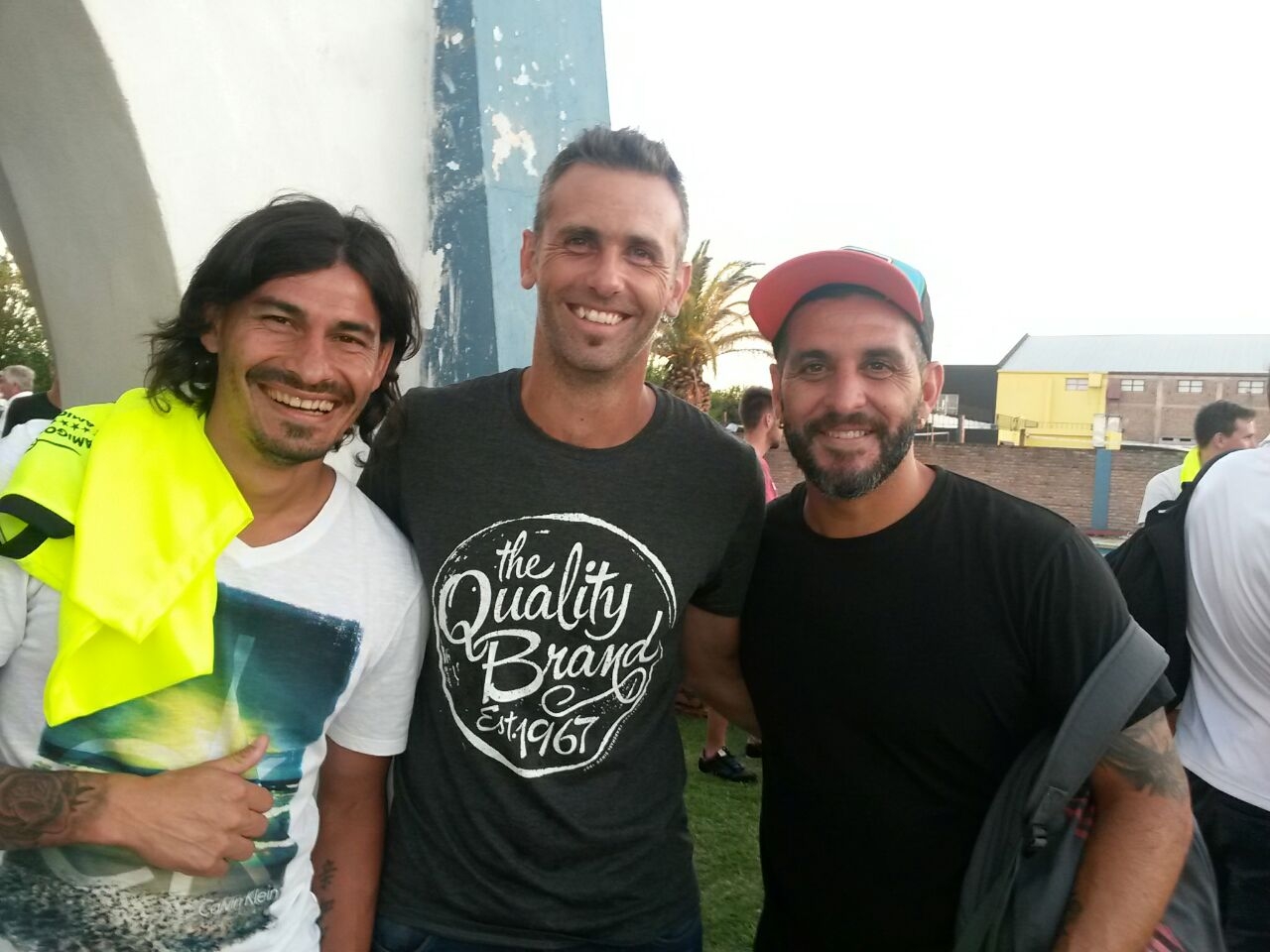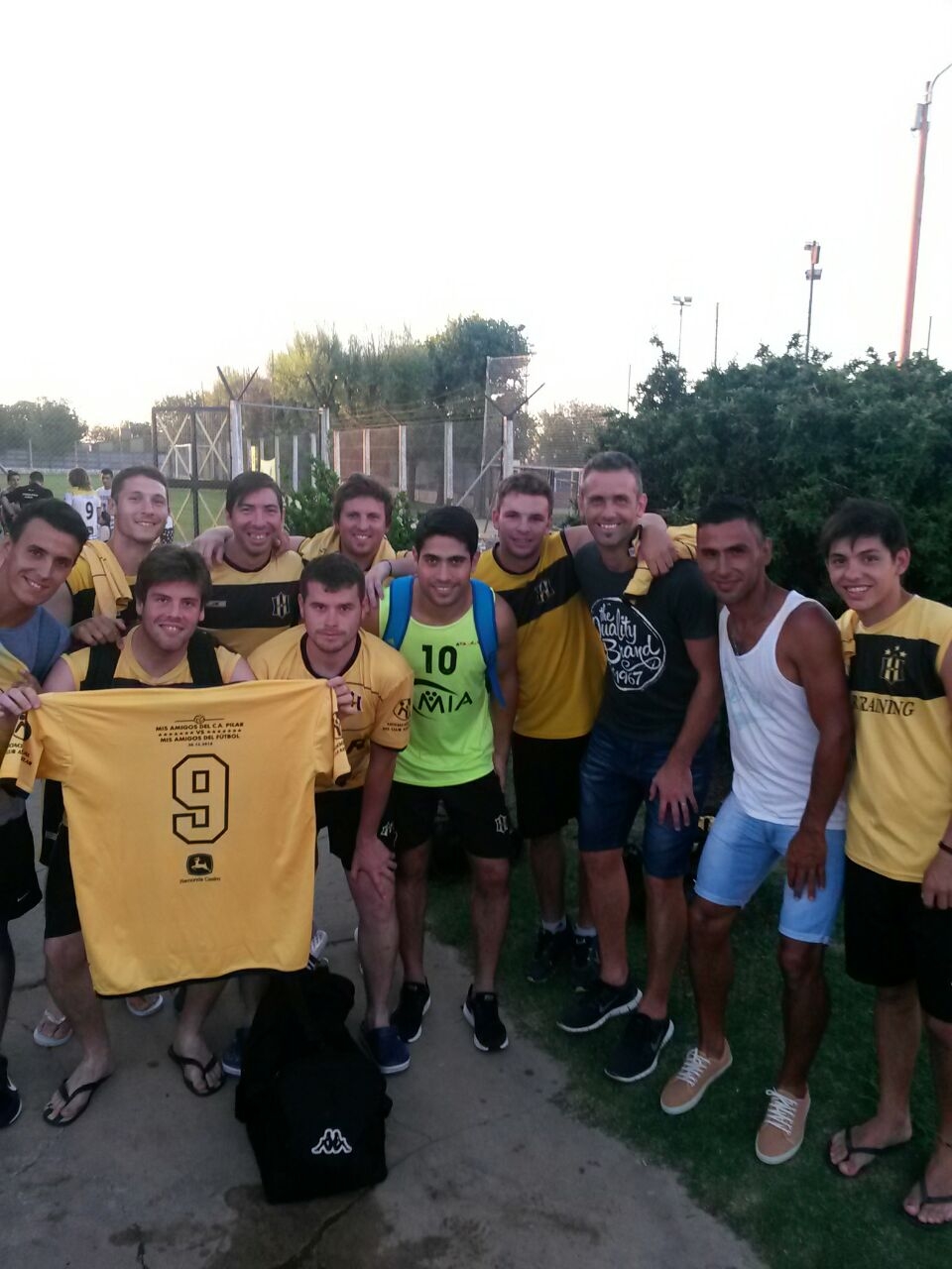 La cita tuvo lugar en el campo de juego del equipo de Pilar, donde estuvieron presentes familiares, amigos, compañeros de Atlético y ex compañeros de la carrera futbolística del oriundo de Freyre. En la imagen se observa a dos ex compañeros con los cuales compartió la delantera en algún momento y con los cuales estrechó vínculos más allá de la cancha como Ismael Blanco y Darío Gandín.
