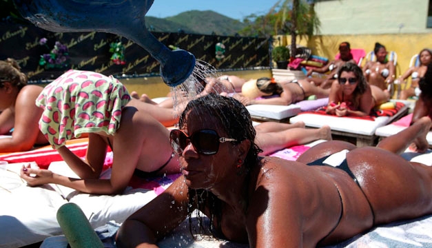 Alrededor de 30 mujeres toman el sol durante tres horas al día en la terraza de Romero, casi sin protección para la piel y sin vestir nada más que cinta adhesiva en sus partes íntimas. El objetivo de estas sesiones es conseguir la 'marquinha', es decir, la máxima demarcación posible de las líneas de bronceado.