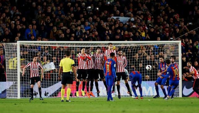 La Pulga anotó un espectacular tiro libre para el 3-1 ante el Bilbao, resultado que metió a los catalanes en los cuartos de final.