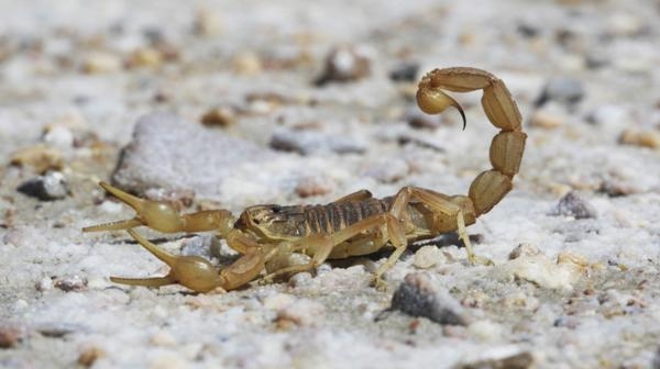 En el caso de un alacrán adulto, los ejemplares son de entre 40 y 65 milímetros, generalmente de color amarillento o amarillo rojizo, con tres bandas oscuras longitudinales en su dorso. Aunque los ejemplares más jóvenes son de coloración más clara. Tienen cuatro pares de patas, un par de pinzas, y un par de quelíceros, como una suerte de mandíbula.