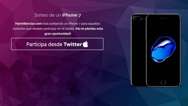 En los últimos días comenzó a circular un falso sorteo en Twitter que promete un iPhone 7 gratis a quienes ingresen a la página web Mytwitterstar.com para participar del supuesto concurso.