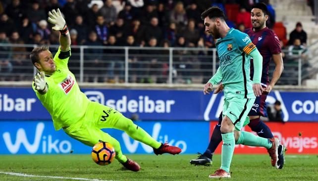 Denis Suárez (31), Messi (50) Luis Suárez (68) y Neymar (90+1) firmaron la goleada azulgrana en el estadio de Ipurua.