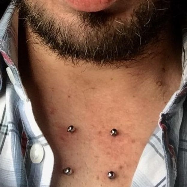 "Hace un par de meses, me insertaron dos pequeñas barras de titanio debajo de la clavícula que cumplen la función de anclar al cuerpo una placa que dentro tiene una brújula con un timbre", le explica Cohen a la BBC.