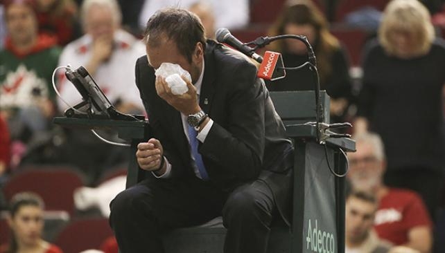 En el quinto punto de la serie que disputaban Canadá y Gran Bretaña por la primera ronda de la Copa Davis en Ottawa, el local Denis Shapavalov perdía 6-3, 6-4 y 2-1 ante Kyle Edmund y cometió un insólito error.