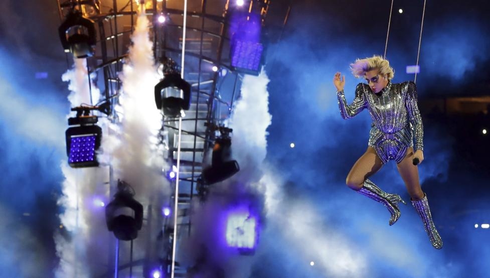 Lady Gaga cayó desde el cielo, colgada, hasta el escenario montado en el estadio NRG. Allí, ante 72 mil personas que colmaban las butacas, la cantante entonó la canción patriótica "God Bless America" y lanzó un mensaje: que su país es una tierra de "libertad y justicia para todos".