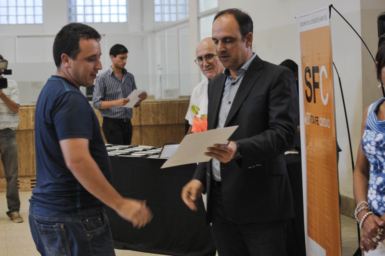El Hall del Palacio Municipal fue escenario este miércoles del acto de entrega de escrituras traslativas de dominio a 73 familias santafesinas. El intendente José Corral encabezó la ceremonia en la que vecinos de 13 barrios se convirtieron en nuevos propietarios en el marco del Plan de Regularización Dominial que lleva adelante el Gobierno de la Ciudad desde 2008.