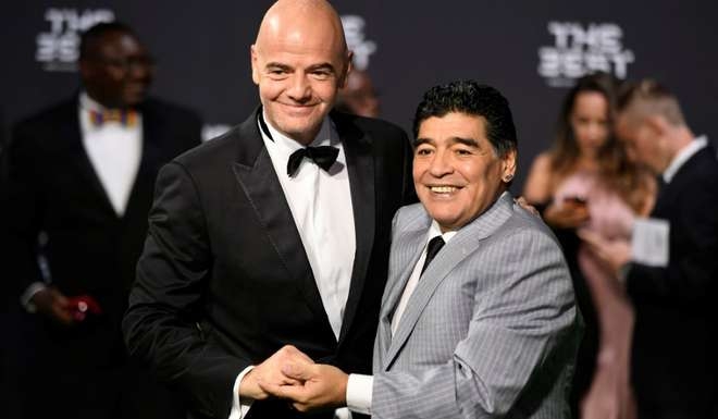 El lavado de cara que sufrió el máximo ente del fútbol mundial a partir de la llegada de Gianni Infantino incluyó una relación renovada con Maradona, luego de años de cortocircuitos con el mejor jugador de la historia. Para fortalecer este nuevo vínculo, este jueves el Diego fue nombrado como Capitán del Equipo de las Leyendas de la FIFA, cargo que lo llevará alrededor del mundo para transmitir un mensaje de unión, hermandad y salud vinculado al deporte más popular. La designación fue recibida por Matías Morla, abogado del Diez, en la sede de la Federación en Zurich, Suiza. El grupo también esta integrado, entre otros, por viejas glorias como Van Basten y Ronaldo.