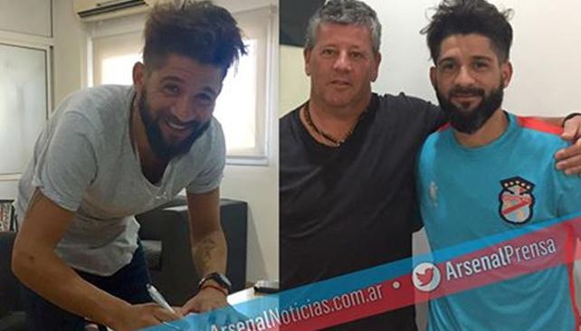 El ex Tigre estuvo acompañado en Sarandí por el presidente Julito Grondona y rubricó su contrato por 18 meses.