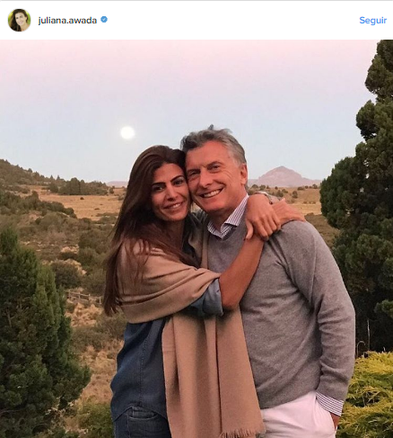 En el Día de San Valentín, o Día de los Enamorados, Juliana Awadapublicó una foto en las redes sociales junto al presidente Mauricio Macriy agregó en el pie de la foto un corazón. Es una costumbre de la primera dama comunicarse mediante Instagram, a donde suele subir fotos de sus actividades o compartir momentos familiares.