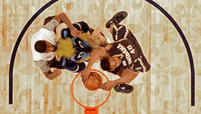 El alero Glenn Robinson III, de los Pacers de Indiana, se coronó nuevo rey de las volcadas de la NBA gracias a la ayuda de su compañero Paul George, de la mascota de los Pacers y de una animadora del equipo.