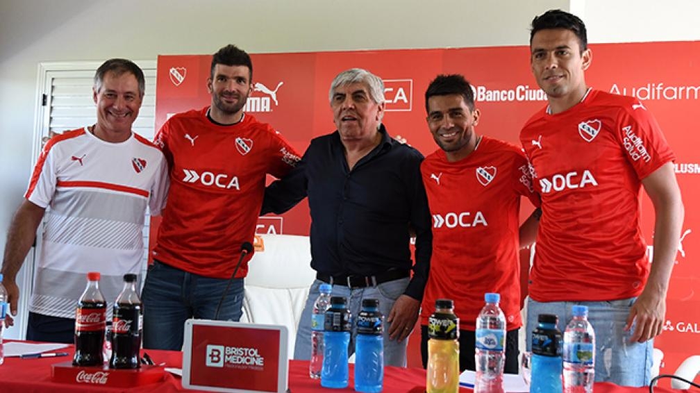 Emmanuel Gigliotti, Walter Erviti y Nery Domínguez fueron presentados oficialmente como refuerzos de Independiente por el presidente Hugo Moyano y el entrenador Ariel Holan en el predio de Villa Domínico.