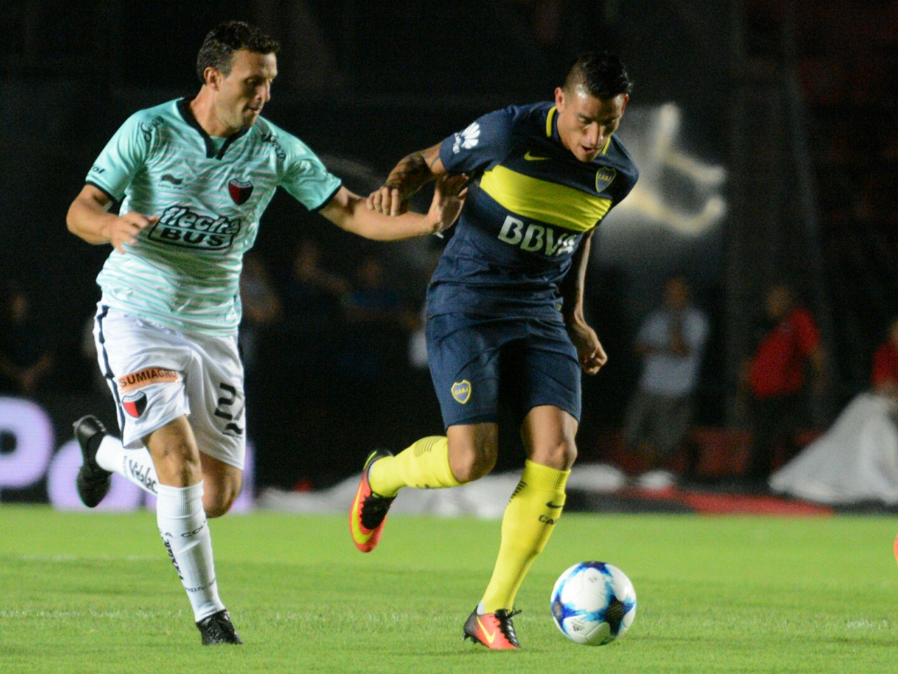 El primer tiempo fue movidito, pese al intenso calor. A los 25 minutos, Frank Fabra le cometió una leve infracción en el área a Ismael Blanco, que Germán Delfino cobró como penal. En su primer partido en el arco Xeneize, Agustín Rossi le atajó el disparo al propio Blanco, pero Nicolás Leguizamón tomó el rebote y abrió el marcador a los 26.