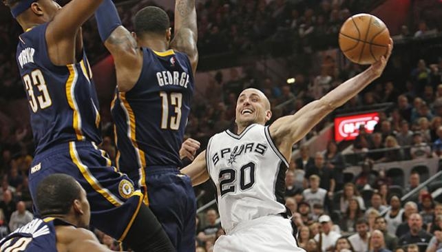 El escolta argentino Emanuel Ginóbili anotó 9 tantos en la victoria que consiguió San Antonio Spurs como local sobre Indiana Pacers por un ajustado 100-99, en el partido más atractivo de los 11 que se jugaron entre anoche y esta madrugada por una nueva jornada de la fase regular de la NBA.