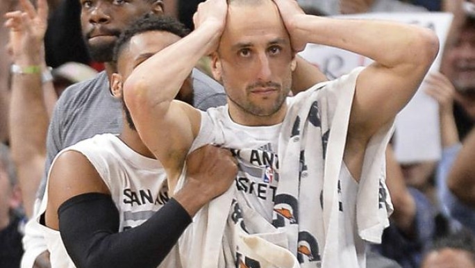 Sorprendió a todos la reacción de Manu Ginóbili ante la conquista de Leonard. El bahiense se agarró la cabeza en el banco, sin creer lo que estaba viendo.
