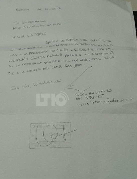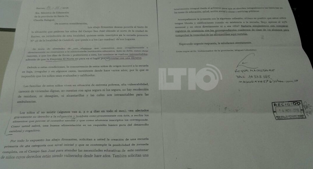 En diálogo con LT10, Roque Macaudiere, vecino de Recreo, expresó que “yo escribí esta carta por la indignación que me genera la situación. Le pedimos a la ministra de Educación y al gobernador que construyan una escuela primaria con una sala de nivel inicial para este sector de Recreo. No hay otra manera de revertir la situación de esta comunidad sin una escuela. Los 100 chicos de esta comunidad tiene que hacer 4 km para ir a la escuela (institución que está en Candioti)”.