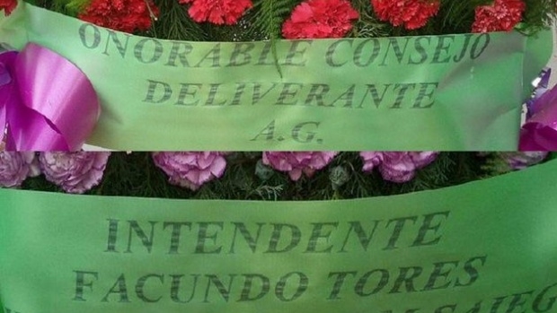 Es que el mensaje enviado en los arreglos florales que llegaron en nombre del intendente Facundo Torres, el vice intendente Juan Manuel Saieg y el Honorable Concejo Deliberante al velatorio de D'Ambra, llevaban gruesos errores ortográficos.