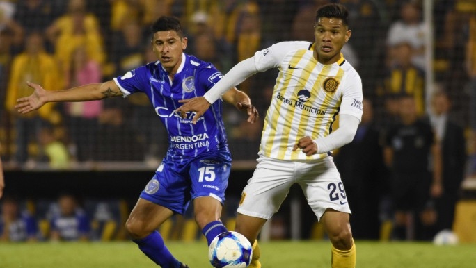 El primer tiempo mostró a dos equipos que quisieron pero que no pudieron. Rosario Central prevaleció en el dominio del campo y de la pelota aunque le faltó juego en los últimos metros para crear chances de gol. Javier Pinola, con todo su ímpetu y tenacidad defensiva, fue lo mejorcito del Canalla, que no contó con un enlace futbolístico (desde el juego, no necesariamente desde la posición) para unir la salida desde el fondo con los delanteros. A su vez, Godoy Cruz intentó incomodar a su rival y lo consiguió a partir de su mediocampo, aunque le resultó difícil sostener la bocha, y si bien insinuó más, tampoco preocupó en demasía a su rival. La única emoción de los primeros 45 minutos fue el (polémico) penal que Rodrigo Rey le tapó a Marco Ruben, quien sí le había ganado la discusión a Teo Gutiérrez para ser el ejecutor aunque no pudo imponerse en el duelo ante el arquero.