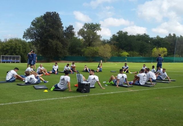 El equipo conducido por Edgardo Bauza se movía en una de las canchas del predio Julio Humberto Grondona de Ezeiza, con la presencia de 25 futbolistas y la única baja de Pablo Zabaleta, descartado por un desgarro en el biceps femoral izquierdo.