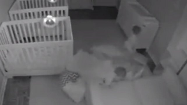 Después de jugar un rato con las luces apagadas, los nenes son lo suficientemente inteligentes para ordenar todos. No dejar pistas. El crimen perfecto. Excepto por un detalle: la cámara de seguridad para bebés que sus papás instalaron en el cuarto.