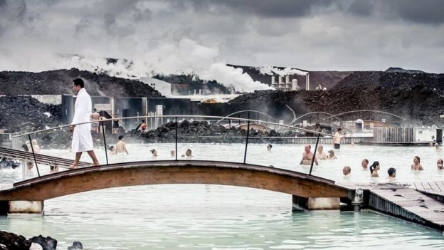 Esta piscina artificial es calentada por una planta geotermal, donde multitudes de turistas británicos, franceses, americanos, rusos y chinos, entre otros, han venido a remojarse.