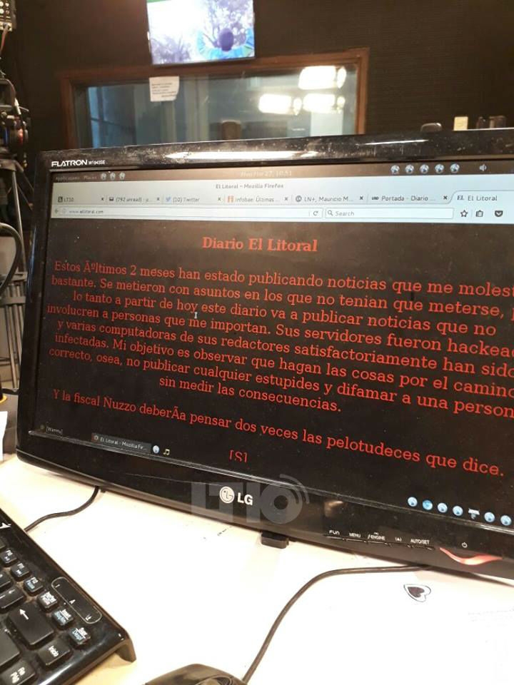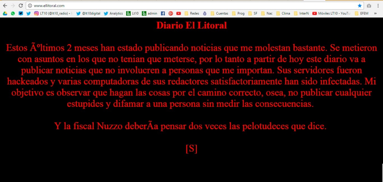 Esta mañana, alrededor de las 10:15 y por unos 30 minutos, la web del diario El Litoral (www.ellitoral.com) fue hackeada por quien parece ser una sola persona, de inicial “S”, según su propia firma.