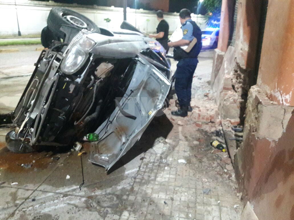 Esta madrugada, un hombre de 20 años chocó y volcó su automóvil en Avenida Blas Parera y Regís Martínez, frente al Cementerio Municipal.