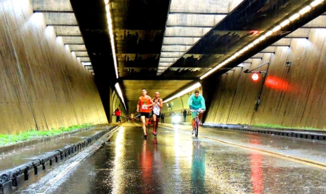 Cuando los inspectores de Tránsito y el personal del Túnel dieron la señal, los veteranos anunciaron la largada y centenares de corredores salieron rumbo al túnel.