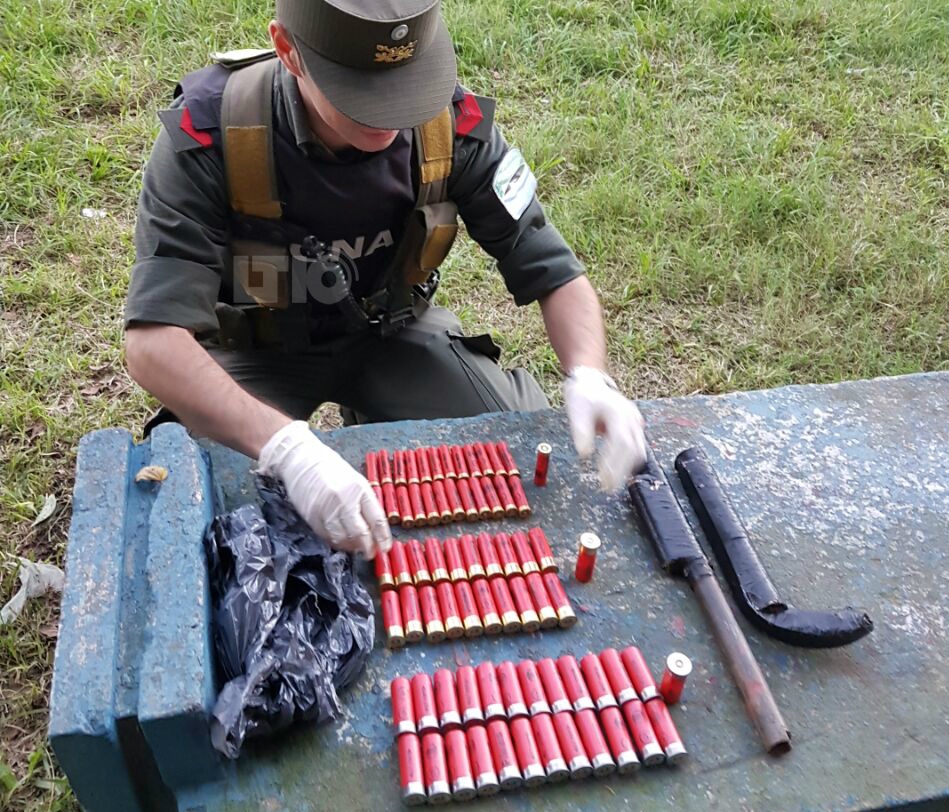 En el marco de un patrullaje de gendarmería en el barrio Chaparral de Santo Tomé, Gendarmería intentó detener a un joven que se trasladaba en una moto, en una actitud sospechosa. El muchacho descartó una bolsa negra y se dio a la fuga. Los agentes ecnotnraron tenía en esta bolsa una tumbera y 66 cartuchos (calibres 12, 14 y 16).