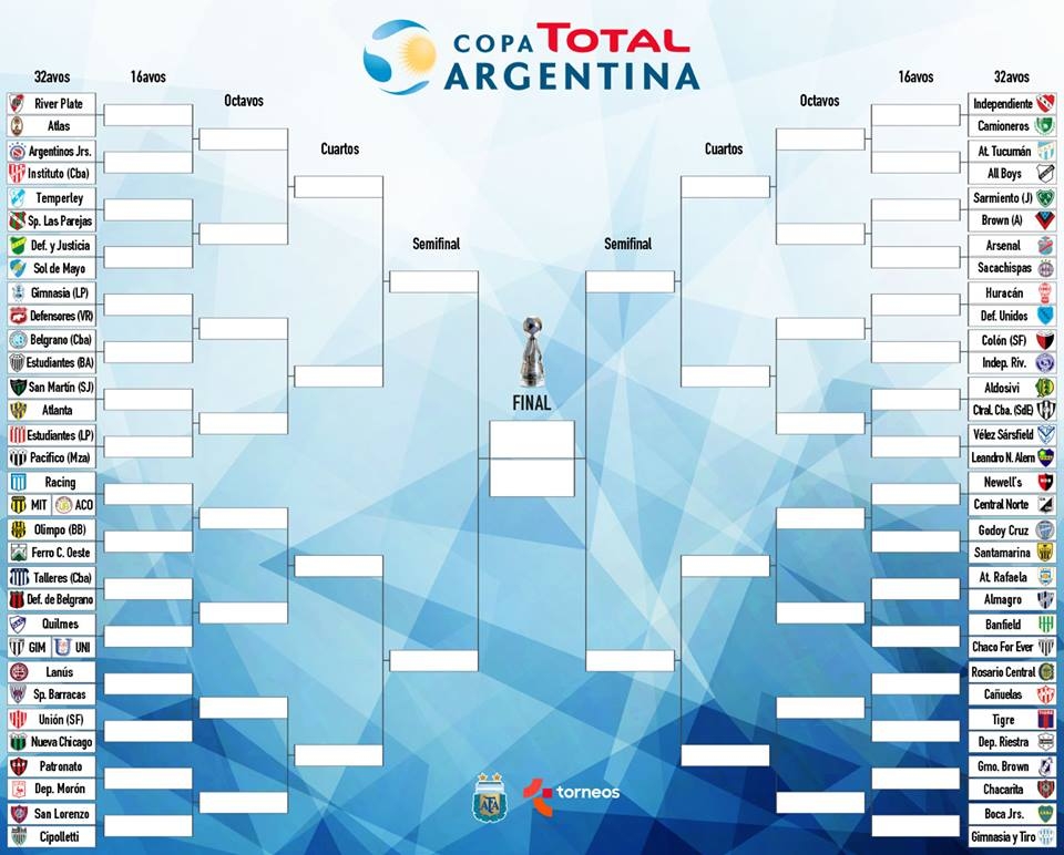 Te mostramos (foto) cómo quedó diagramado el torneo y los posibles rivales con los que se pueden topar Tatengues y Sabaleros, quienes debutan en 32avos de final ante Chicago e Independiente Rivadavia, respectivamente.