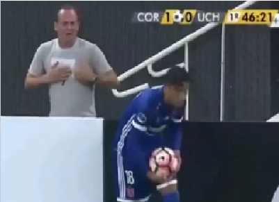 Durante el partido entre Corinthians y Universidad de Chile, un colaborador quiso sacar ventaja, pero hizo el ridículo