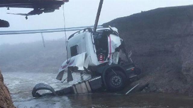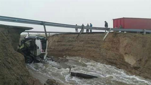 La fuerza del agua tras las intensas precipitaciones abrió una grieta a la altura del kilómetro 1673. En el hueco cayó un camión.