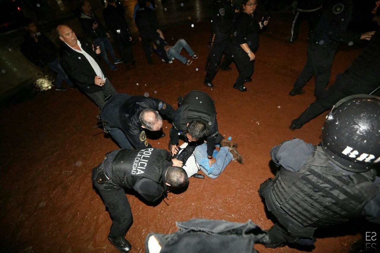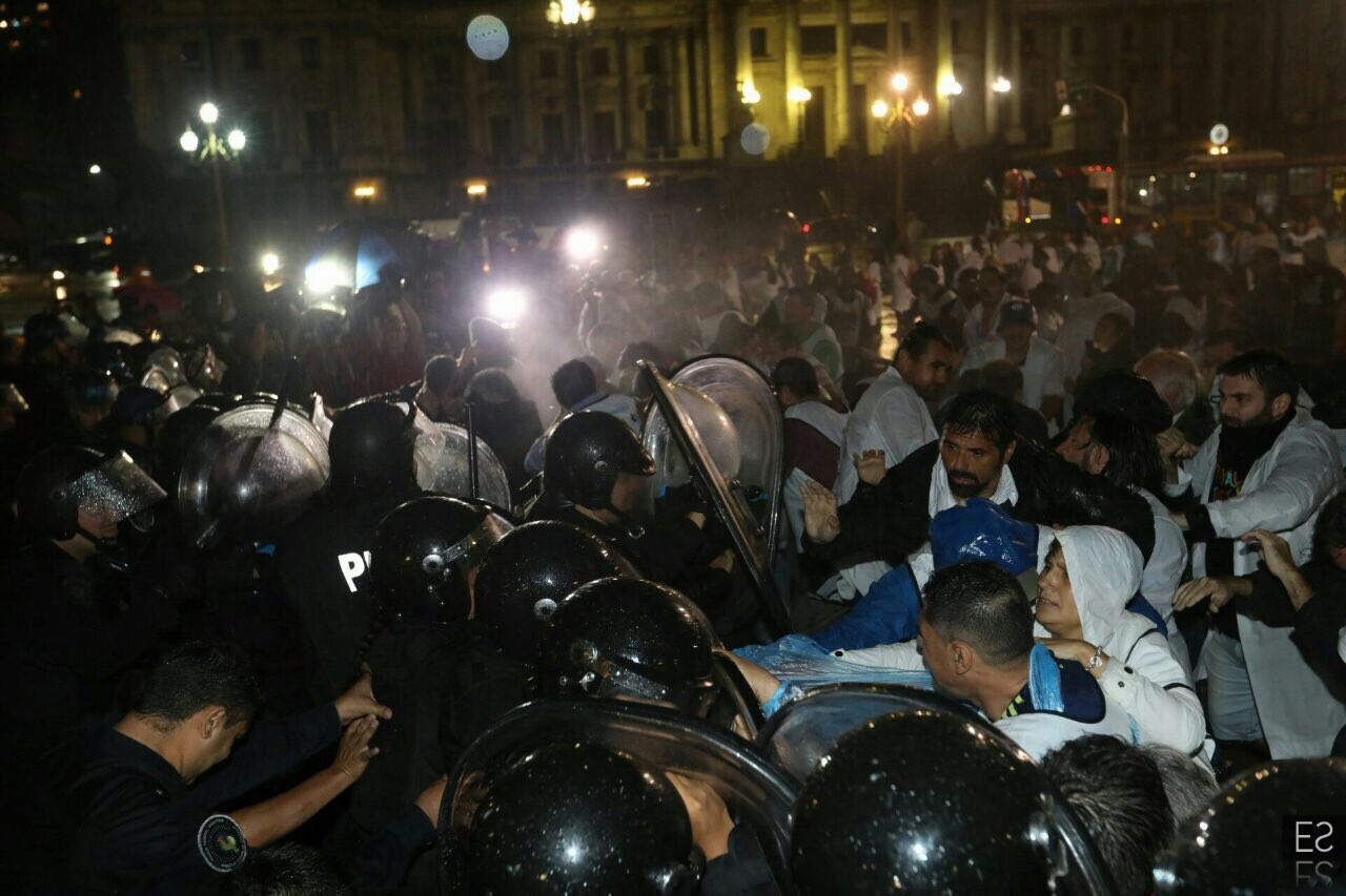 La Policía Metropolitana reprimió en la noche de este domingo a sindicalistas docentes que quisieron instalar una nueva versión de la carpa blanca en la Plaza de los Dos Congresos. Según pudo comprobar Clarín desde el lugar, los uniformados arrojaron gas pimienta y desalojaron a los manifestantes.