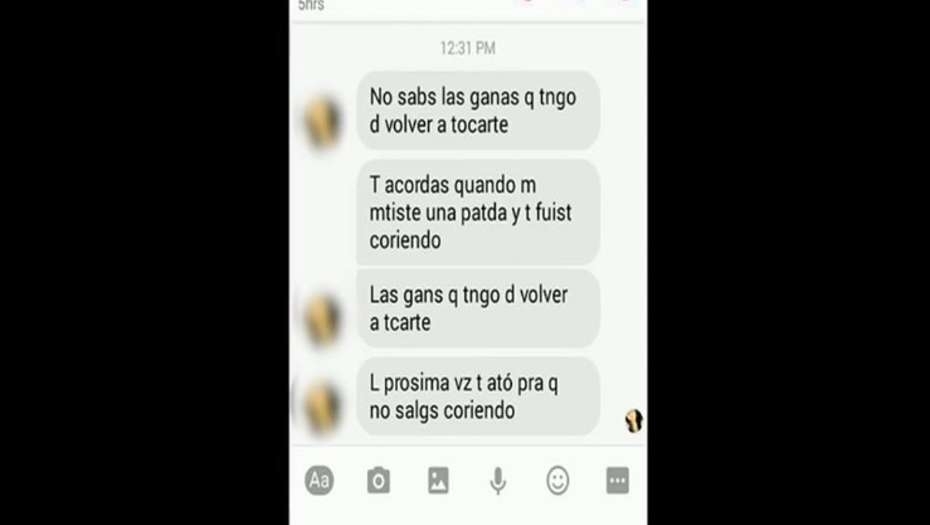 "No sabés las ganas que tengo de volver a tocarte", "¿Te acordás cuando me metiste una patada y te fuiste corriendo?", "Las ganas que tengo de volver a tocarte" y "La próxima vez te ato para que no salgas corriendo", fue la primera tanda de mensajes amenazantes.