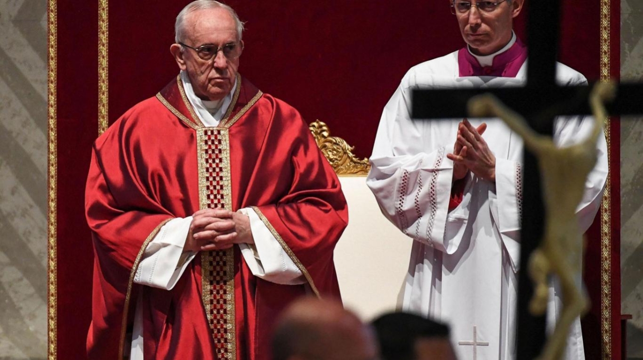 El papa argentino, de 80 años, no participó de la ceremonia caminando, sino que siguió la procesión desde un podio.
