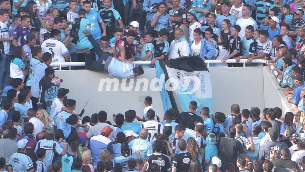 El hecho sucedió cuando estaba finalizando el primer tiempo del superclásico de Córdoba entre Belgrano y Talleres. Aún se desconoce la razón por la que algunas personas estaban golpeando a este individuo, hasta que cayera desde una altura importante.