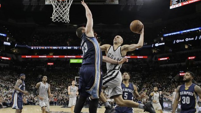 San Antonio Spurs (1-0), con el ingreso de Emanuel Ginóbili, superó con claridad a Memphis Grizzlies (0-1), por 111 a 82, para adelantarse en la serie de cuartos de final que ambos equipos animan por la Conferencia Oeste de la NBA de Básquetbol.