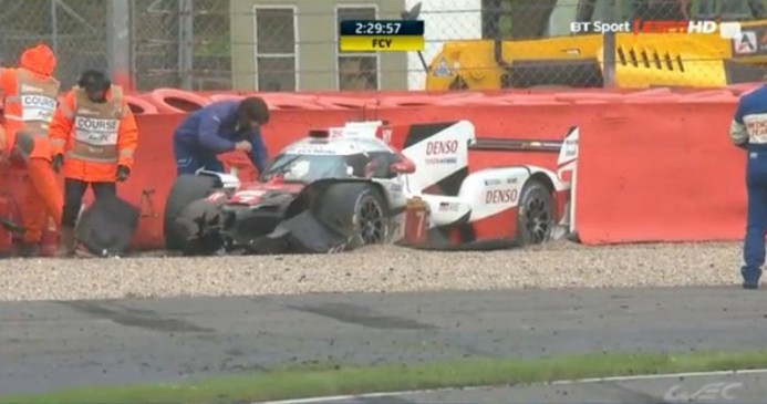 José María López perdió el control del TS050 y se despistó en uno de los curvones, quedando fuera de las 6 Horas de Silverstone