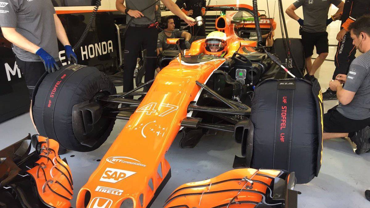 Honda informaba entonces que su unidad de potencia recién instalada había sufrido una fuga de agua en el ERS, el sistema de recuperación de energía. Decidieron entonces sustituirla, en lo que emplearon prácticamente la totalidad del tiempo disponible para entrenar. Cuando el coche naranja volvió a la pista pudo sumar 16 vueltas en cuatro tandas con un tiempo a 3.6 de Hamilton.
