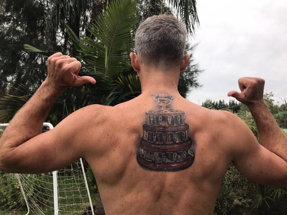 El capitán del combinado argentino decidió cumplir con una extrema promesa que realizó antes de disputar la final del torneo en Zagreb y se tatuó la Copa Davis en la espalda, cubriendo casi la mitad de eso.