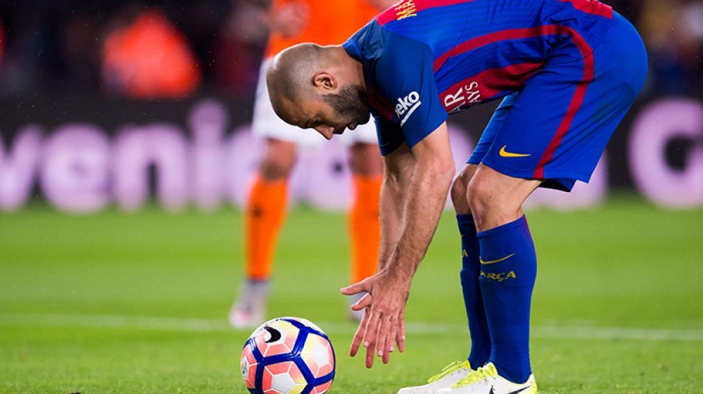 Javier Mascherano rompió con el maleficio en Barcelona y convirtió su primer tanto con la camiseta blaugrana: el argentino se hizo cargo de un penal cuando su equipo ganaba 5-1 ante Osasuna y, con un potente remate, marcó el sexto.