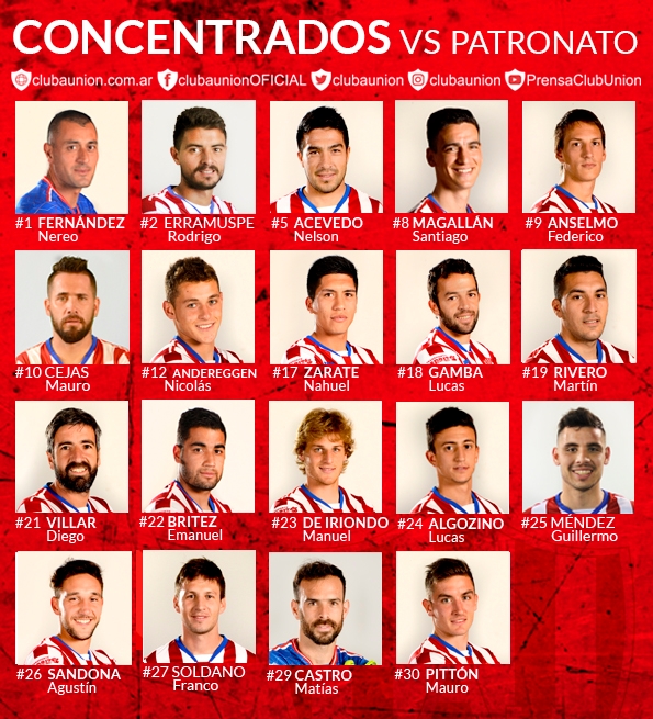 A pocas horas de volver a jugar en casa, se conocieron los concrentrador de Unión para el encuentro de este sábado, a las 20.30, frente a Patronato. El plantel espera en el predio Casasol a la espera del duelo correspondiente a la 22ª fecha. Todos los nombres: